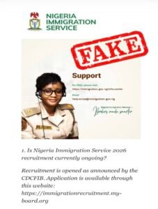 The Nigeria Immigration Service (NIS) has warned members of the public against fake websites circulating online and falsely claiming to be conducting recruitment into the Service.