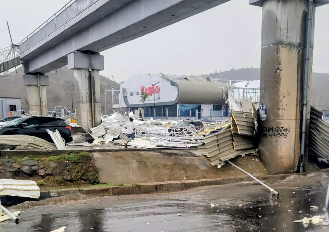 A rainstorm on Tuesday afternoon destroyed parts of the Kugbo Bus/Taxi Terminal in the Federal Capital Territory (FCT), scheduled to begin operations soon.
